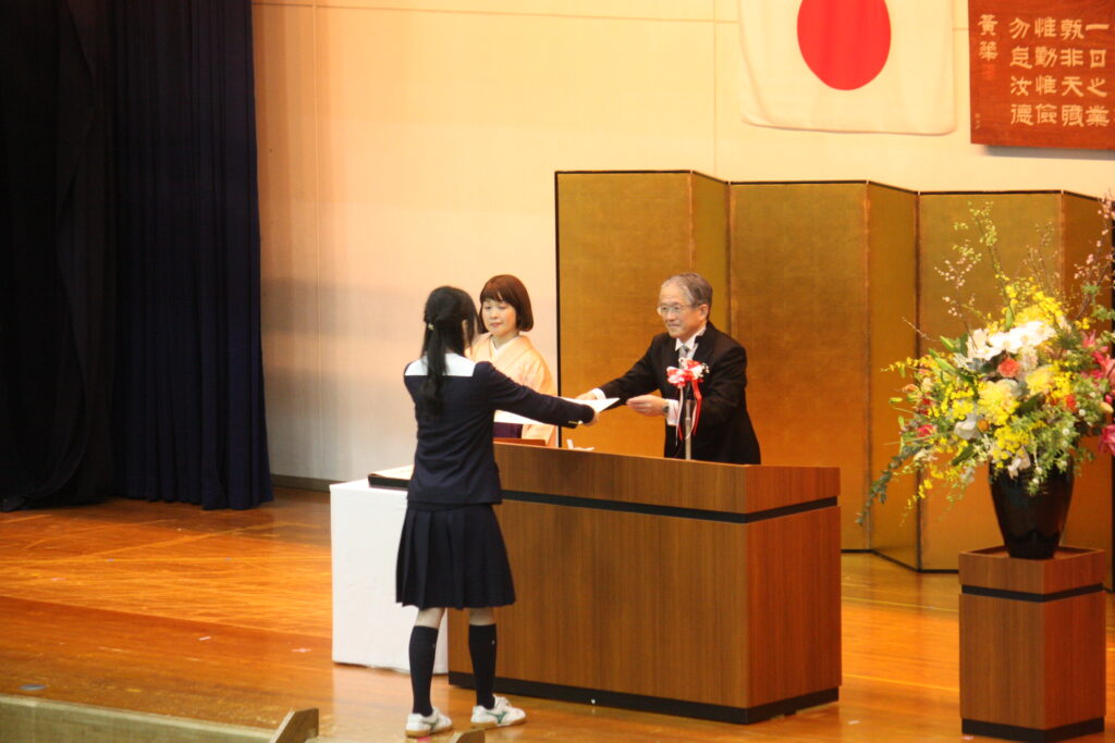 在校生の送辞では卒業生への感謝の言葉が伝えられ、卒業生の答辞がのべられました。