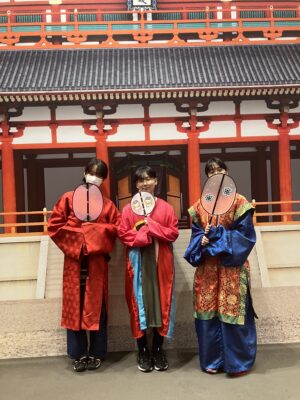 衣装を着たり,展示された品物を見て、その時代についての学びを深めてきました。