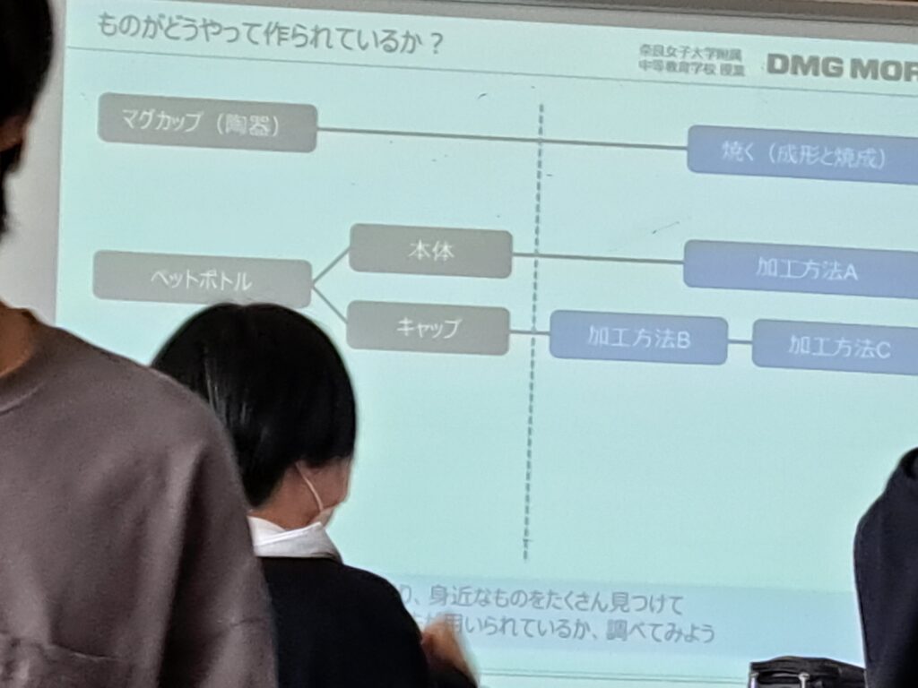 後半では、鋳造や成形射出、レーザー加工など具体的な加工方法を学び、実際に身のまわりにある製品を例にどのような加工方法が用いられているのかを調べ、意見交換を行いました。