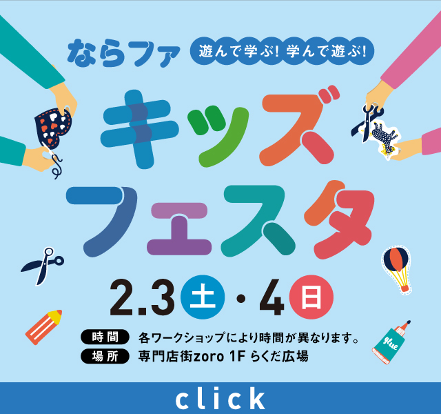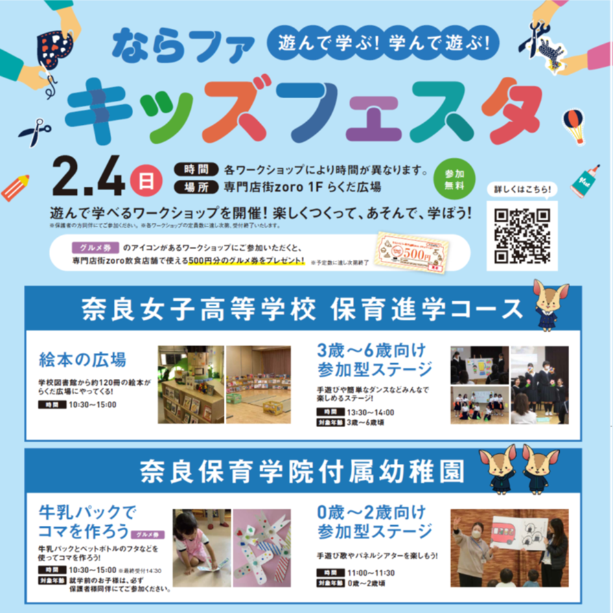 2月4日(日)に開催される『ならファミリー』のキッズフェスタに参加します。