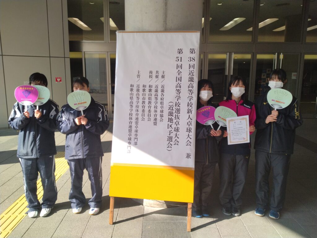 12月23日(土)〜25日(月)の3日間、和歌山県で近畿高等学校新人卓球大会が行われました。そのうち、学校対抗の部で5位にランクインし、3月に山形県で行われる全国選抜の出場権を獲得しました。本番に向けて引き続き精進します。