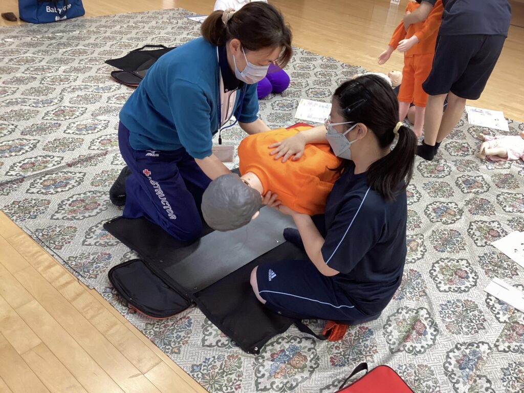 Topics トピックス 幼児安全支援員講習会 2023.8.1 #学校生活 7/27〜29、保育進学コースの2年生たちが幼児安全支援員講習会を受けました。 この講習では、支援員資格の取得を目指し、幼児安全法支援の技術・知識を学びます。 バンダナやストッキングを用いた応急処置の仕方、赤ちゃんの心肺蘇生法など、具体的な場面を想定しながら様々な実技指導を受けました。みんな真剣な眼差しです。 最終日には試験を受け、合格すれば支援員の資格を取ることができます。 とても充実した3日間でした。 NHK「あおきいろ」全国放送で紹介されます。 奈良県私学フェア開催について 関連記事 2026.03.12 「AERA」3月12日号に本校の取り組みが紹介されました!! 2026.02.18 卒業式 2025.11.20 第2回道徳教育パワーアップ研究協議会 2025.09.26 【2年造形表現 コラージュ】~保育進学コース~ 2025.09.26 【1年生造形表現 ステンシル、スクラッチ】 ~保育進学コース~