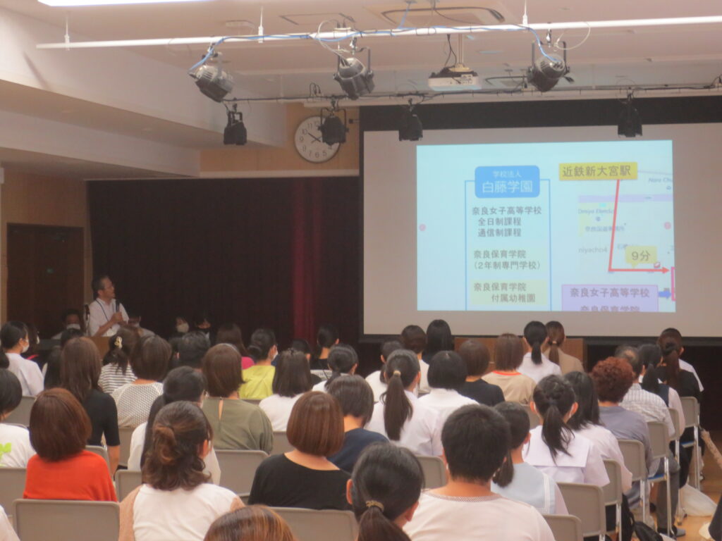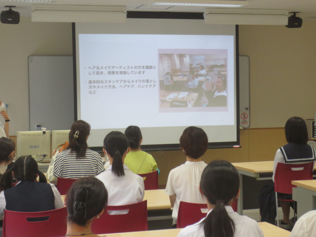 8月19日(土)、今年度1回目の体験入学を開催しました。全体会では、学校長より本校が進めている教育内容を説明し、各コース主任よりコースの活動内容を説明しました。全体会の後には、特別進学コース、保育進学コース、総合進学コース(パティシエール選択)、総合進学コース(デザイン選択)、総合進学コース(標準選択)の5つの講座に分かれて体験授業を受けていただきました。参加者の中学生の皆様にとって、本校の特徴や学校の雰囲気を知る良い機会になったと思います。
