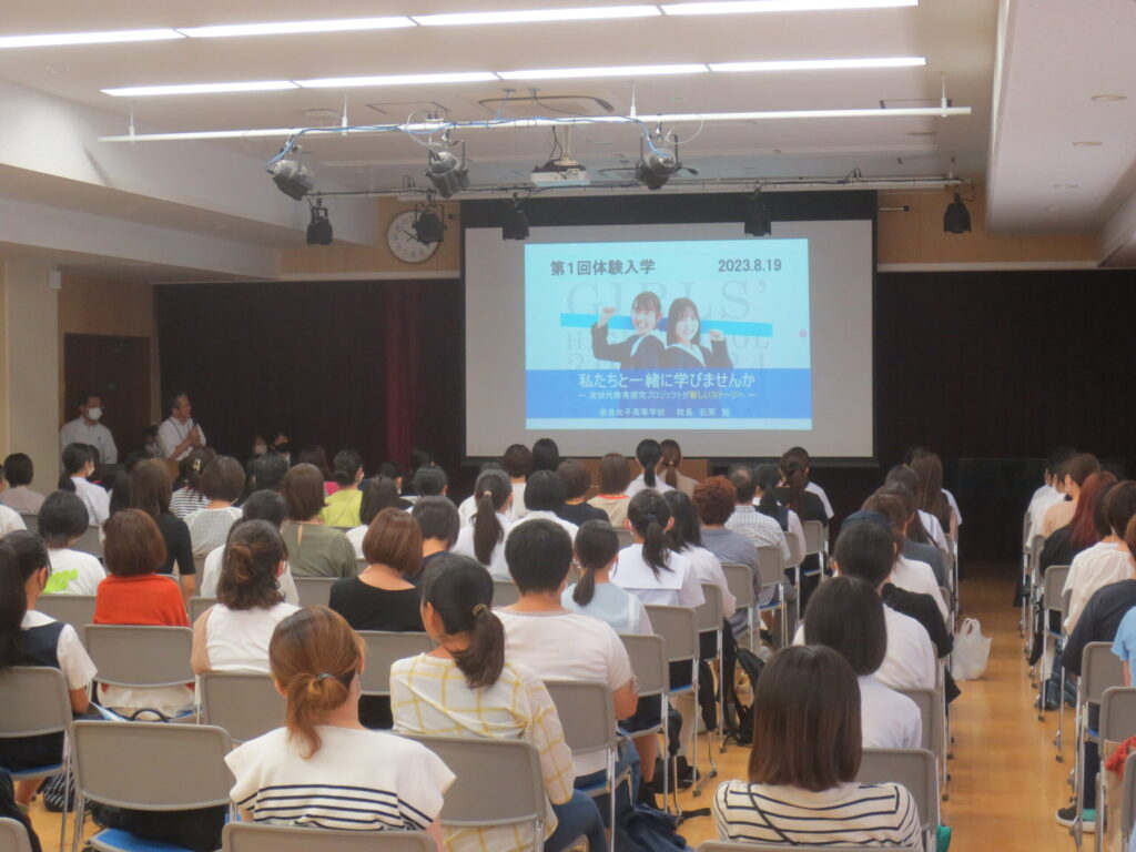 8月19日(土)、今年度1回目の体験入学を開催しました。全体会では、学校長より本校が進めている教育内容を説明し、各コース主任よりコースの活動内容を説明しました。全体会の後には、特別進学コース、保育進学コース、総合進学コース(パティシエール選択)、総合進学コース(デザイン選択)、総合進学コース(標準選択)の5つの講座に分かれて体験授業を受けていただきました。参加者の中学生の皆様にとって、本校の特徴や学校の雰囲気を知る良い機会になったと思います。