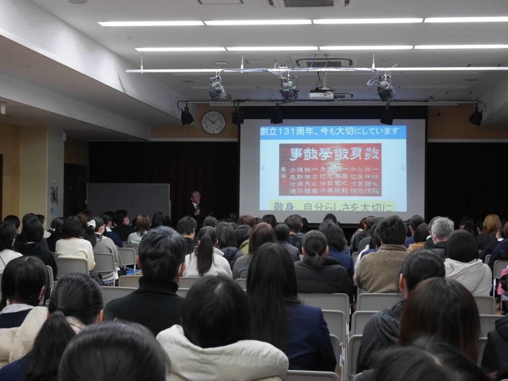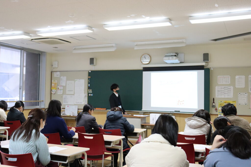 12月14日(土)、第3回体験入学が開催されました。全体会で学校長挨拶、入試要項についての説明が行われた後、各コースに分かれての講座が行われました。特別進学コースでは数学講座ならびに理科の実験、保育進学コースでは実際に保育園に行っての園児とのふれあい、総合進学コース(パティシエール選択)ではクリスマスケーキづくりに挑戦、総合進学コース(デザイン選択)では缶バッチづくりの製作、総合進学コース(標準選択)では探求学習の体験など多様な講座が行われました。参加された中学生の皆さんには大いに楽しんでいただけたのではないかと思います。また、当日は総合進学コースのパティシエール選択、デザイン選択の卒業制作展も行われていました。😊