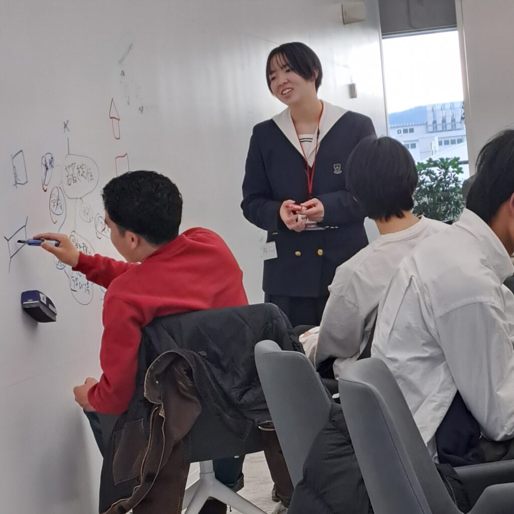 そして奈良女子高生は冬休み中の課題テーマ「今回のプランやコンセプトを身近な大人にプレゼンしよう」の結果発表を班内で行いました。👍💮💯