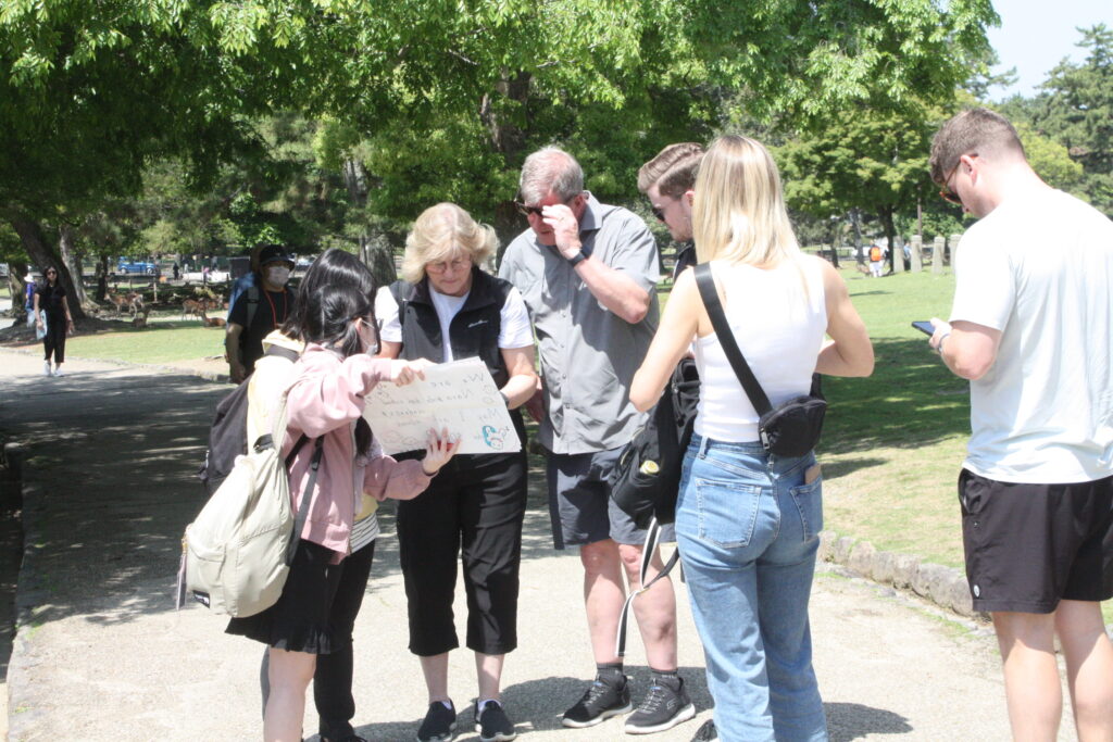 Topics トピックス 1年生探求学習 フィールドワーク② 2023.6.26 #授業 探究の教科では、5月の特別時間割に奈良公園へ行き、「SDGsの広がり」を探りました。現地では外国人観光客にSDGsについてどのようなアクションを起こしているかインタビューをしました。1学年で150名以上の外国の方にインタビューをすることができました。聞き取った成果をデータにして分析し、関係者と意見交流をしていく予定です。 令和6年度の学校案内を公開しました 1年生探求学習 フィールドワーク① 関連記事 2026.03.12 「AERA」3月12日号に本校の取り組みが紹介されました!! 2026.02.02 探求プロジェクトの成果発表 (大和みらいカップ) 2025.11.29 1年生の探究授業の様子が奈良テレビ放送で紹介されました! 2025.11.20 第2回道徳教育パワーアップ研究協議会 2025.11.01 奈良テレビ放送で本校の探究活動の様子が紹介されました!